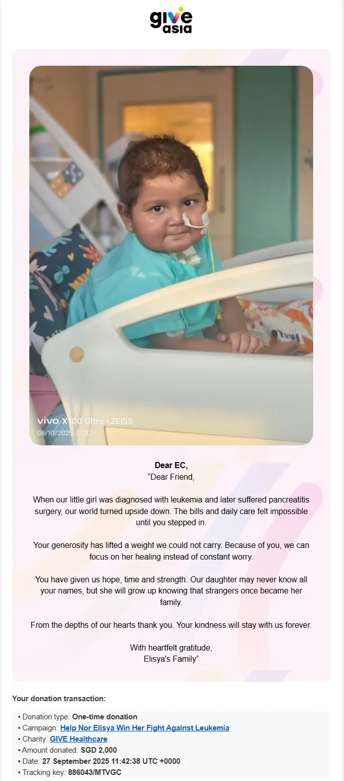 27/09/2025 Lastest Donation Singapore SGD 70,057.28 more