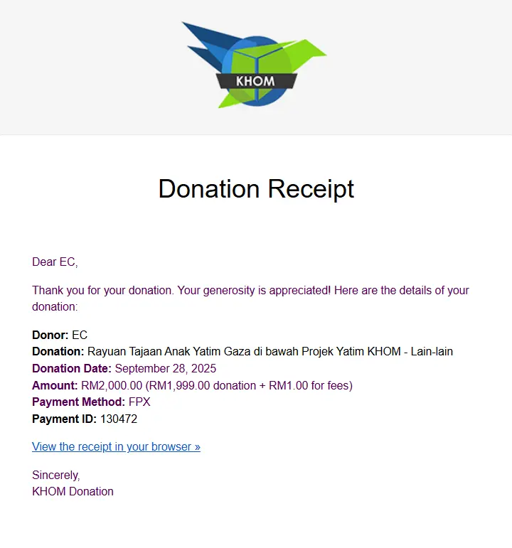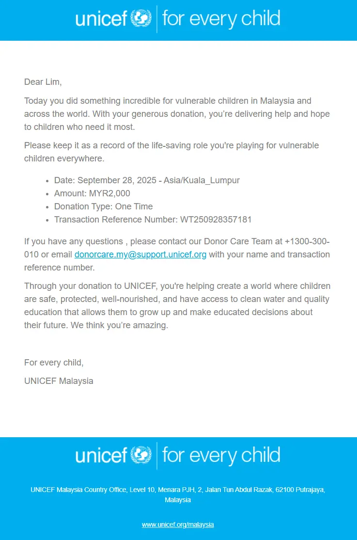 27/09/2025 Lastest Donation Malaysia RM 67,292.20 more